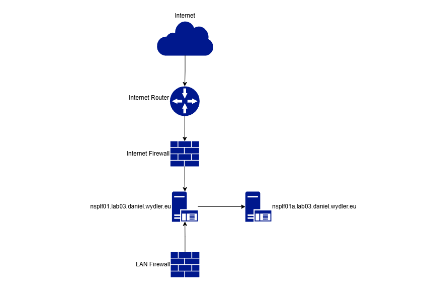 Ich habe in meiner DMZ eine virtuelle Maschine (VM) mit Ubuntu Server 24.04 LTS bereitgestellt. Parallel dazu habe ich einen neuen DNS-Eintrag mit dem Namen nsplf01.lab03.daniel.wydler.eu angelegt. Dieser zeigt auf die IP-Adresse der VM.