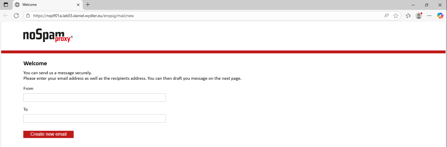 Im Forum des Herstellers NoSpamProxy (NSP) des gleichnamigen Produkts gibt es einen Beitrag Landingpage für Dateiupload für Externe Absender. Und zwar bietet das Modul Web Portal mit dem Parameter „Secure web emails“ die Möglichkeit das Formular ohne Einladungslink zu verwenden.